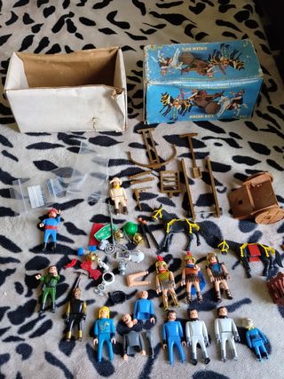 Precio final: YA REBAJADO y NO NEGOCIABLE (no contesto regateos). Lote de Airgamboys (uno es original y el resto son reedición Saica, con figuras para limpiar / restaurar porque tienen un tacto gomoso adherente). Están todos bien de articulaciones. Consta de 8 personajes, 6 caballos y todos los complementos que se ven en las fotos: sombreros vaqueros, cascos romanos, escudos, estandarte, rifles, pistolas, espadas, arco, capa, cinturones, remolques de carro, etc. Temática oeste / romanos. Se vende TAL Y COMO SE VE EN LAS FOTOS (son parte descriptiva del producto a la venta). Si tienes dudas pregúntame (no admito devoluciones).