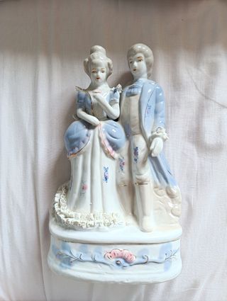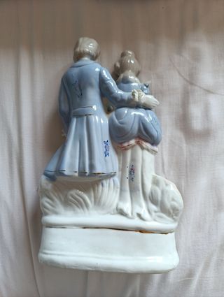 De ceramica de COELLO Valladolid mide 9 x9 en la base y 16 cmsde altura está figura tiene más valor ya q está descatalogada ha estado en una vitrina mur cuidada