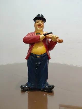 Figura decorativa de cerámica inspirada en el dúo cómico El Gordo y el Flaco. - Representación de los personajes tocando la guitarra. - Detalle en el vestuario y sombrero. - Base negra para exhibición. Cualquier cosa al privado, urge venta👈