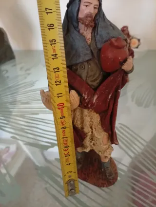 *¡Lote de Figuras para Portal de Belén! 🎄* ¡Vendo lote de tres figuras para portal de Belén de los años 80, hechas de resina pintada a mano con un encanto único! 🌟 *Figuras incluidas:* - José - María - Niño Jesús - Pastor con cordero (con pequeño desconchoncito en la base) *Características:* - Material: Resina pintada a mano - Época: Años 80 - Altura: Entre 10 y 11 cm - Diseño: Clásico y tradicional - Estado: Buen estado, con pequeño desconchoncito en la base del pastor *Un conjunto perfecto para completar tu portal de Belén o para regalar a alguien especial. ¡No te pierdas la oportunidad de adquirir estas figuras de Belén a