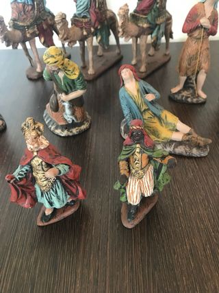 Intercambio conjunto de figuritas para belén, representando a los Reyes Magos. - Figuras de cerámica. - Colores variados. - Ideal para coleccionistas.