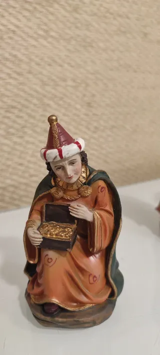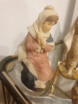 Conjunto de figuras para un belén o nacimiento. Se aceptan ofertas Virgen Maria: 22cm alto Jesus: 30cm niño jesus: 5x 13,5 x 9 cm animales: 23 - 25 cm Gaspar y Baltasar: 26 cm alto Melchor: 21 cm Foto5: le falta un mini trozo que se soluciona pintandolo y le falta el aro. - Incluye figuras de María, José, el niño Jesús, un burro, una vaca y los Reyes Magos. - Figuras detalladas con vestimentas de colores. - Ideal para decorar en Navidad.