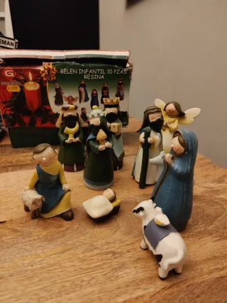 Conjunto de figuras para belén infantil. - Material: Resina. - Incluye 10 piezas.
