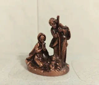 Figura decorativa de bronce de la Virgen María, José y Jesús. En perfecto estado Medidas aproximadas: 6 cm de alto y 5 cm de ancho