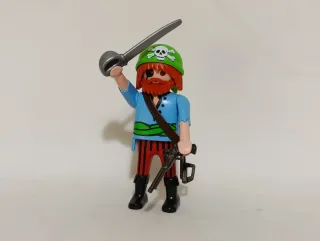 Figura de Playmobil de un pirata con accesorios. - Incluye pistola y sable dorado. - Viste un sombrero de pirata con calavera. - Lleva un pañuelo rojo y barba. - Chaqueta azul con detalles dorados. En mi perfil más artículos playmobil, medieval, oeste, indios, caballeros, vikingos, soldados, pesebre, Belén, caganer, accesorios playmobil. Se hace envío ordinario Por wallapop o inpost. Posibilidad de recogida en zona.