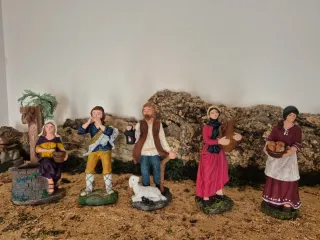 Conjunto de figuras de pastores para belén, con una altura aproximada de 10 cm. - Figuras de estilo tradicional. - Detalladas representaciones de oficios. - Ideales para montar tu propio belén. - pintadas a mano. - precio por unidad