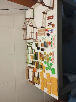 Conjunto de piezas de Playmobil para montar escenas de granja, equitación y belén.un montón de piezas - Incluye elementos de construcción. - Accesorios variados para animales y figuras. - Piezas de vallas y cercados. - Elementos decorativos temáticos.