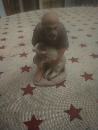 Figura hermanos Castells, pastor con oveja, barro, en perfecto estado, serie 11 cm, antigua