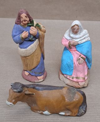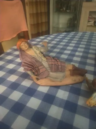 Figura belén antigua, barro , década de los 50, moldeada a mano, en perfecto estado