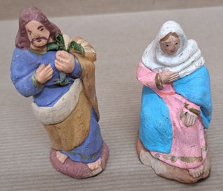 Antiguas figuras de Belén, nacimiento. Terracota pintada a mano Siglo XIX o principios del XX. Mide 8 cm de altura la mas grande, el estado de conservación es tal y como se puede ver en las fotos