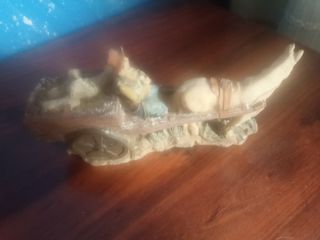 OFERTA! Figura Belen de un ángel de nacimiento, obra de M. Ortigas. Representa una figura con túnica y alas, posada sobre una base azulada. - Detalle de túnica con pliegues. - Alas blancas. - Base con textura de nube. presenta algún pequeño desperfecto en la ala y en la base azul de pintura, tal cual en las fotos .
