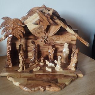 Precioso nacimiento de Belén fabricado en madera de olivo. Incluye figuras y portal. Está comprado en Belen, Es precioso y su estrella es musical con la música de noche de paz. Solo girandola a su derecha suena la melodia. La componen : Casita, San josé, Virgen María, Niño Jesús , 3 Reyes Magos , Angel, Estrellamusical, Palmera Mula, BUey, Señora con cántaro, Pastor, 2 ovejas y palmera - Diseño artesanal. - Detalles tallados. - Base decorativa Miren en mi perfil tengo diversos nacimientos