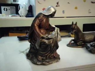 Conjunto de figuras de estilo antiguo para belén. Presentan un aspecto vintage. - Figuras de estilo antiguo. - Aspecto vintage. Figura virgen maría a 11 euros (con la mano rota) de 24cm de alto y casi 12cm de ancho Caballo a 12 euros (en la base tiene un trozo roto) de 15 cm de alto y 23cm de ancho Figura niño Jesús 9 euros (no presenta mucho desgaste pero un piel está un poco roto y las esquinas desgastadas) de casi 7cm de alto y 13 cm de ancho Pack completo a 25 euros negociable igual que las figuras