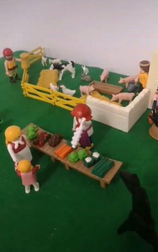 Lote de figuras y accesorios de Playmobil para un belén. - Incluye figuras de personas y animales. - Elementos de granja y mercado.