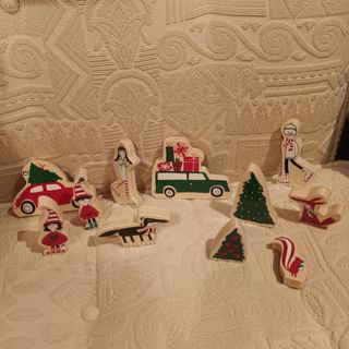 las figuras tienen el dibujo estampado por los 2 lados. paisaje invernal. Figuritas no vinculadas con el belén o nacimiento tradicional Elfos, Árboles de Navidad, animales, patines...