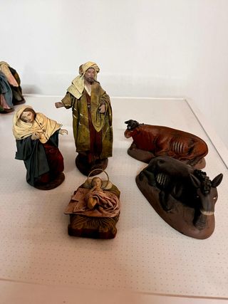 Conjunto de figuras para el Belén. - Incluye figuras de San José, la Virgen María, el Niño Jesús, un buey, una mula y otras figuras. - Ideal para crear tu propio nacimiento.
