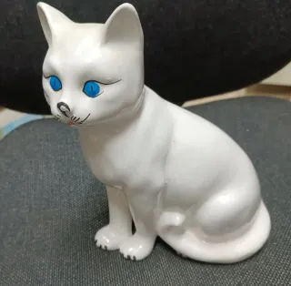Figura decorativa de Sargadelos - Cerámica blanca con detalles en azul. - Base circular con patrón de cuadros.