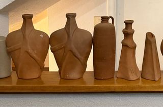 Conjunto de figuras decorativas de barro, con un diseño único y artesanal. - Material: Barro - Acabado: Textura rústica - Diseño: Variado, con formas orgánicas y estilizadas Precios: Primera foto de izquierda a derecha: 30, 30, 25, 20 y 15 euros. Última foto de izquierda a derecha: 35, 35, 35 €