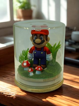 Se hacen figuras en cupulas de cristal. Tenemos muchos modelos a elegir y tamaños.pregunta por el tuyo Varios precios.Desde 5 euros las pequeñas - Diseño inspirado en el universo de Super Mario. - Base con césped artificial y detalles. - Cúpula de cristal con base de madera.
