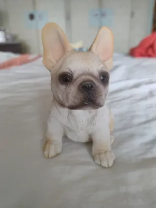 Figura decorativa de un bulldog francés. 13cm de altura - Diseño realista. - Color crema y detalles en marrón.