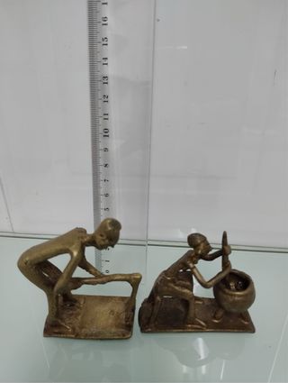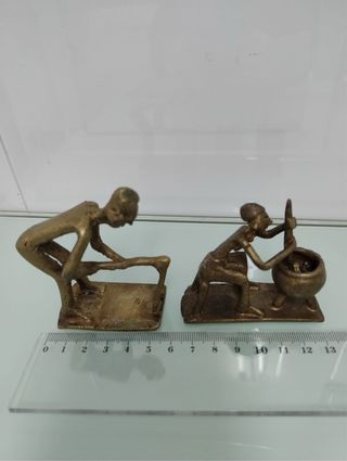 Conjunto de dos figuras decorativas antiguas hechas de cobre. Representan escenas de oficios tradicionales. - Material: Cobre - Diseño: Figuras de oficios