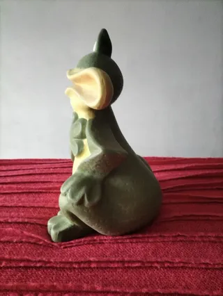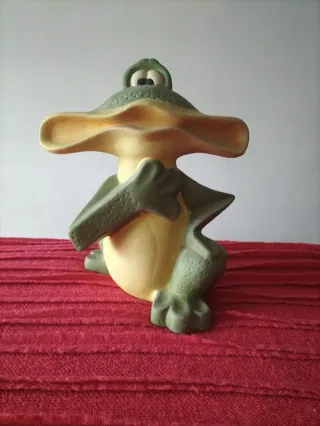 Figura decorativa con forma de rana. - Diseño divertido y original. - Colores verde y amarillo. - Ideal para coleccionistas o como regalo. Medidas: Ancho: 29 cm Fondo: 12 cm Alto: 38 cm