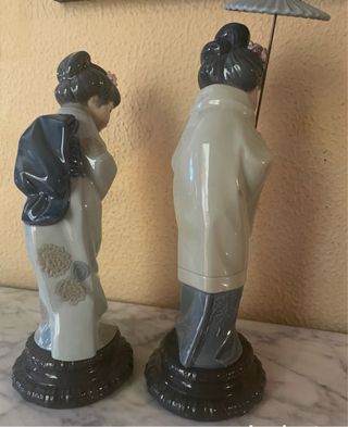 Figura con sombrilla:Oriental Spring” (referencia 4988), una geisha con parasol y Figura con manos juntas en saludo: Existe en la referencia 4989, denominada “Sayonara” o “Japanese Sayonara”, donde la geisha inclina levemente la cabeza con las manos juntas