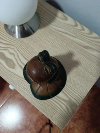 Figura buda, no se de que material está echo,me han dicho k es marmolina,aunque está hueco,pesa bastante.Tiene una pequeña rallita ,arriba ,en la cabeza.No se aprecia,si no te acercas.Dicen que trae suerte y prosperidad.Mide 24 cm de alto y 16 de ancho