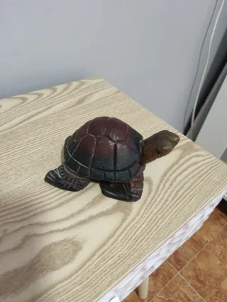 Figura decorativa de madera con forma de tortuga. - Hecha a mano. - Diseño detallado.