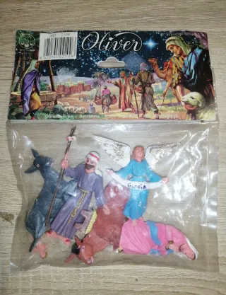 Conjunto de figuras para Belén Oliver. Ideal para recrear el nacimiento. Incluyen San José, virgen Maria, niño Jesús, ángel, mula y buey. Se conserva en su precinto original. - Incluye figuras de animales y personas. - Diseños detallados. Ideal para niños, se puede unir a otros lotes, más lotes parecidos en mí perfil, hago envíos a toda España.