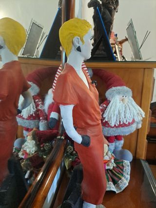 Hermosa estatuilla de nuestra señora la Virgen de la Cabeza. -Figura de MARMOLINA. pintada a mano. -Detalles dorados y plateados. -Presentada en base decorativa. -En perfecto estado. -con peana para colgar el pared , de madera 38 altox 30 ancho x 10 profundidad .