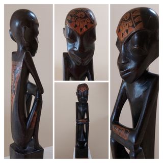 Conjunto de 4 figuras decorativas de estilo africano, talladas a mano en madera oscura. - Diseño tribal. - Piezas únicas. - Ideal para coleccionistas. - Compradas a artesano en Senegal - Precio por las 4, tambien las tengo publicadas en individual
