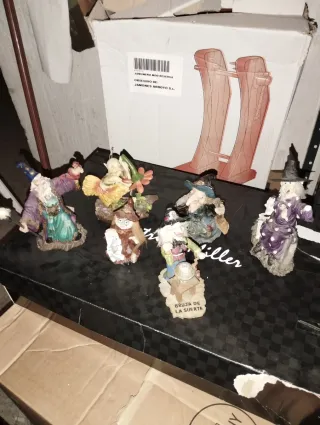 Conjunto de figuras decorativas con temática de brujas, magos y otros personajes. - Caja grande con multitud de figuras, no se el número pero por encima de las 25 seguro. - Incluye varias figuras detalladas. - Ideal para coleccionistas o decoración temática. - Algunas figuras pueden tener roturas o golpes.