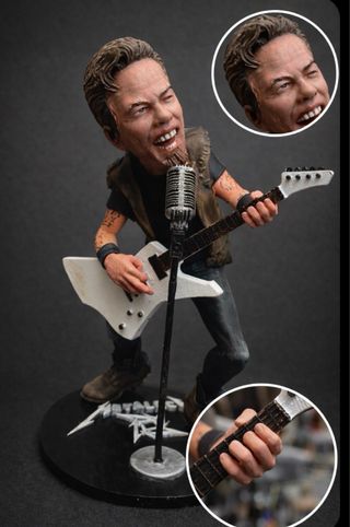 Figura artesanal pintada a mano de James Hetfield de Metallica. - Réplica detallada del músico. - Base con logo de Metallica.