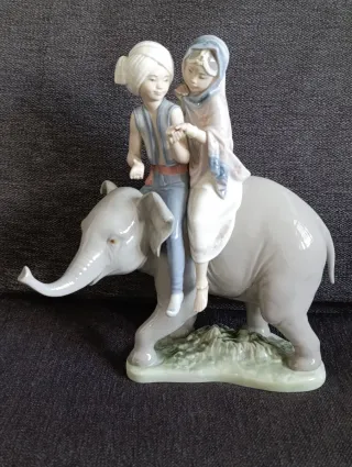 Figura Lladró Niños Hindúes y Elefante