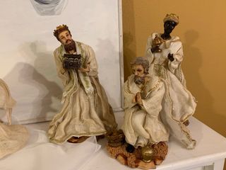 Conjunto de figuras para belén de estilo italiano. Incluye seis piezas. - Figuras detalladas con vestimenta tradicional. - Representación de Reyes Magos y otras figuras. - Fabricación artesanal.