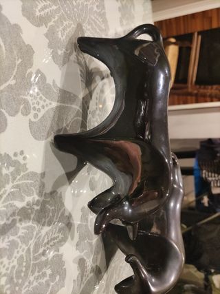 Espectacular figura de caballo, realizada en 3D. Se encuentra en excelentes condiciones. - Escultura de un caballo en pose dinámica. - Material: resina. - Color marrón con detalles negros.
