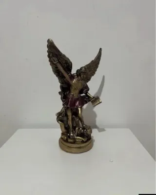 Arcangel San Miguel. Elegante figura decorativa de un arcángel con acabado dorado. - Tiene 29 cm de alto. - Diseño detallado con alas. - Base circular para estabilidad. - Kira Bali hace envíos a toda España...más artesanía y decoración en mi perfil...