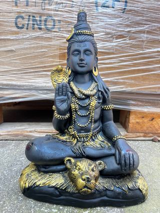 Figura decorativa de Shiva en posición de meditación. Presenta detalles en dorado sobre fondo negro. La imagen muestra una estatua decorativa del dios hindú Shiva, conocido como el destructor y transformador dentro de la trinidad hindú. - Tiene 30 cm de alto. - Diseño detallado. - Base con rostro de animal. - Kira Bali hace envios a toda España...mas artesania y decoración en mi perfil...