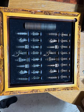 Exclusivo ajedrez de colección dedicado a la ciudad de Málaga. Un set espectacular donde cada pieza es una pequeña escultura metálica de gran detalle. El juego incluye figuras que representan los monumentos más icónicos de la capital de la Costa del Sol (La Catedral, la Farola, etc.).