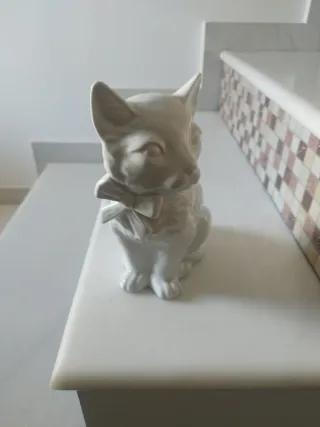 Figura decorativa de un gato en cerámica blanca. Ideal para añadir un toque de encanto a cualquier espacio.para escobilla wc 24 cm alto - Material: Cerámica.alemana - Color: Blanco.