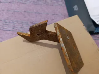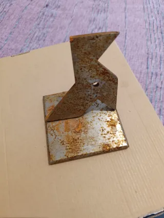 Figura decorativa con forma de pajarita de metal y tiene oxido (ha estado en el exterior) Diseño abstracto y moderno. Se puede usar como sujeta libros, soltar las piezas y colgar en la pared, etc Envío