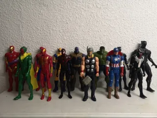Colección de figuras de acción de Marvel. 18 muñecos de 30 cm de la saga Marvel. Han decorado la habitación de mi hijo y por edad toca cambio decoración. Creo que es muy buena oportunidad de comprar la colección a muy buen precio. - Incluye personajes icónicos del universo Marvel. - Ideal para niños, coleccionistas y fans.