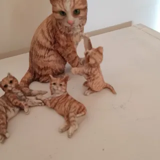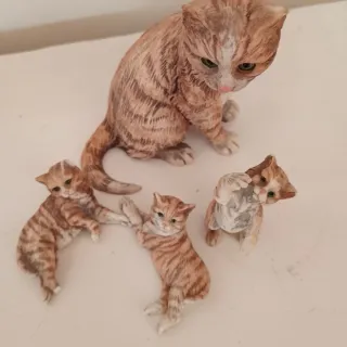 Conjunto de figuras decorativas de una familia de gatos atigrados. Incluye una figura grande y tres pequeñas, pintados a mano . Madre in italy - Gatitos en diferentes poses. - Detalles pintados a mano. - Ideal para coleccionistas.