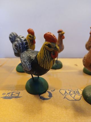Conjunto de pollos y gallinas barro, ideales para belenes o decoración. Altura 7 y 6.5 cm aproximadamente estás nuevas - Figuras de gallos y gallinas. - Material: Barro. - Diseño artesanal.