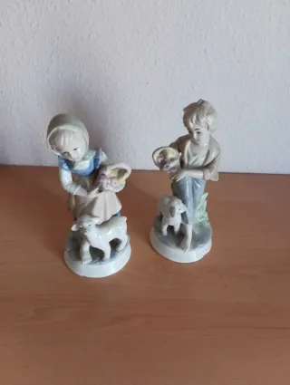 Conjunto de dos figuras de porcelana vintage, representando a un niño y una niña con corderos.( 4€ las dos) - Diseño detallado. - Estilo clásico.