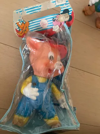 Conjunto de muñecos coleccionables. - Muñeco bebé holandes, con manos articuladas. 30 cm de alto estirado. 6€ - Figura de bebé hucha vintage, goma dura, marca J. Mira, 24 cm de altura la numero 2 de la coleccion. 15€ - Cerdo pequeño. Antigua maquineta de los año 80 pero no tiene la maquineta, 3€ - Figura feliz uno de los 7 enanitos de la pelicula blancanieves, spain mirete wp. 21. 10€ Hago envios por wallapop si el pedido sube mas de 25€ o sino por correo ordinario o certificado y pago por bizum o transferencia. Hago cambios por vestidos de nancy o barriguitas, laminas de cromos troquelados, recortables... que no tenga.