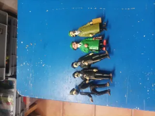 Se venden 13 figuras de goma de diferentes colores y diseños. Son figuras pequeñas como soldados, indios y guerreros. Están en buen estado, listas para jugar o coleccionar. - Figuras de plástico. - Colores variados. - Motivos de indios y vaqueros.