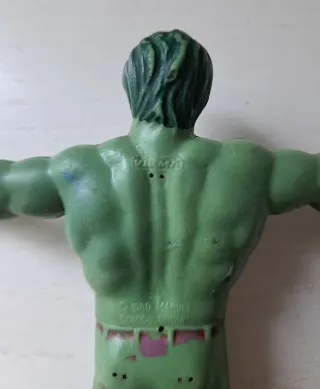 Figura de goma del personaje Hulk de Marvel Cómics, fabricada por Vicma. Año 1980. En buen estado, dada la antigüedad, pero con una pequeña raja en la axila izquierda. Para coleccionistas. #Marvel #Vicma #Hulk #LaMasa