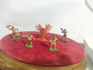 * HOMBRES PRIMITIVOS CAVERNÍCOLAS DE GOMA. " SERIE ANTIDILUVIANOS " Años 50 ( MUY ESCASOS ). De " JECSAN " Medidas: 4,3cm . Conjunto de figuras de hombres primitivos, cacernícolas. Ideal para coleccionistas. - Cada figura porta un arma o herramienta. - Se incluye un árbol decorativo. SI ESTE ARTÍCULO NO TE HA INTERESADO. ENTRA EN MI PERFIL. SEGURO ENCUENTRAS ALGO QUE TE GUSTA. CUALQUIER DUDA PREGUNTAR.